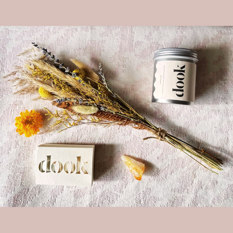 'Creating Space' has teamed up one of our beautiful and unique dried flower bouquets with two luxury, handmade products from Dook. This thoughtfully curated wellbeing gift box is designed for those in need of a little respite and self-care — to unwrap tranquillity and soak up a moment to pause, reflect, rejuvenate, and just be.