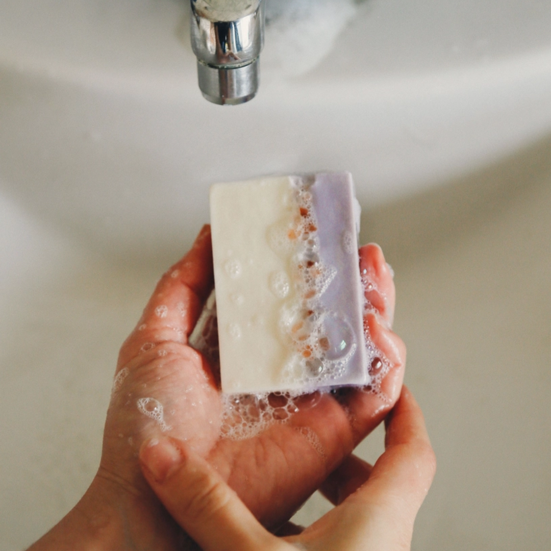 Lather the soap between your hands and wash with the thick luxurious foam.