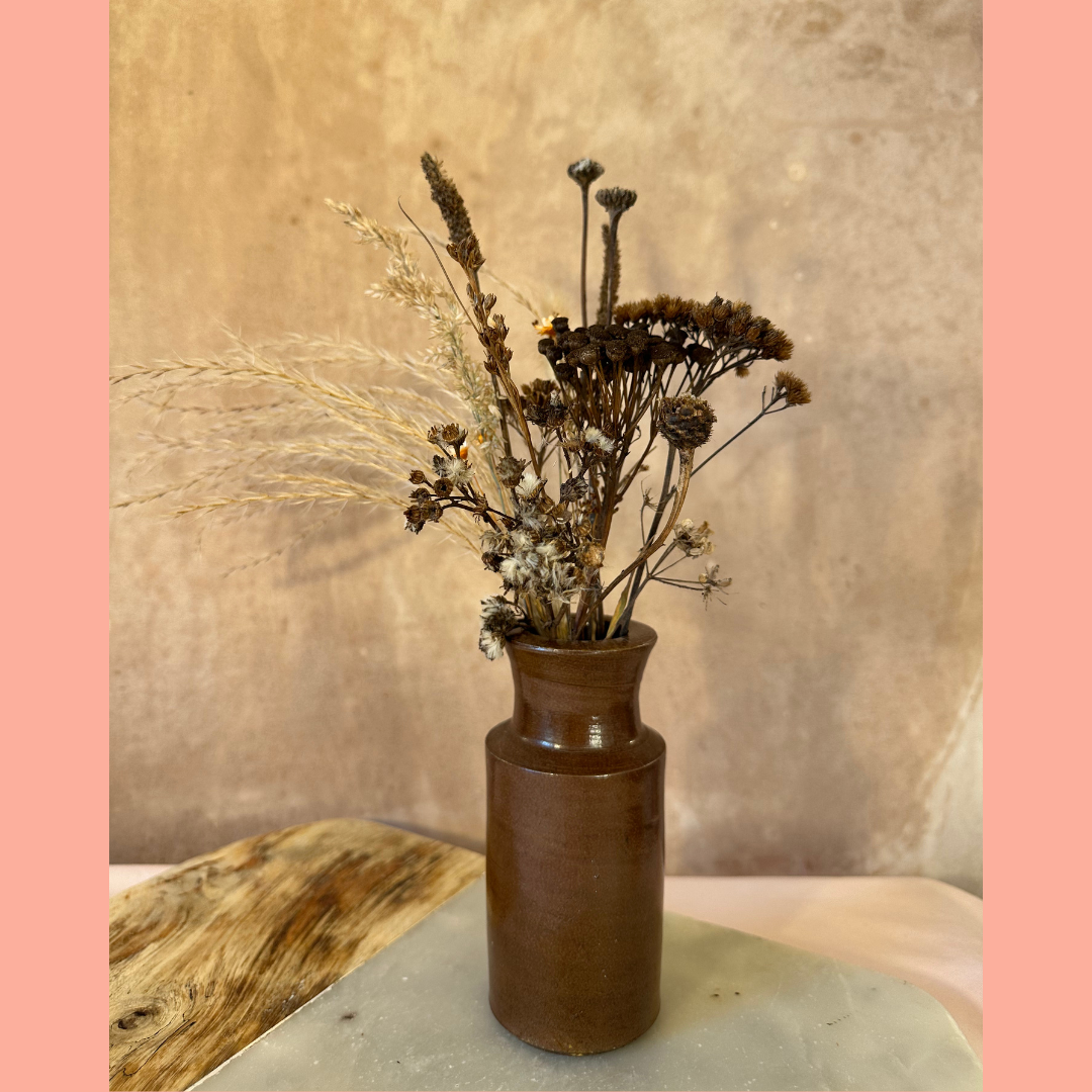 Dried flowers and hand-picked naturally dried plants* in a unique antique* vase, ready to rock any shelf, table or cosy nook in your home!